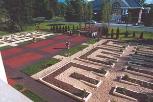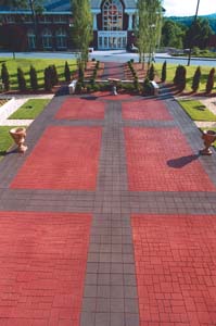 This paving system involves imprinting hot asphalt to create a 3 dimensional appearance, replicating a wide variety of brick, cobblestone and slate surfaces. The textured asphalt is then colored with a polymer cement surfacing system. The members of the decision team from the Culinary Institute were unfamiliar with the product and therefore hesitant to incorporate it into their plan. Yet, after further investigation and a visit to a StreetPrint project they agreed that StreetPrint was the very best alternative. Besides being cost effective the product brought with it the flexibility of design, speed of installation, low maintenance and superior performance under the extreme winter conditions of the Northeast.