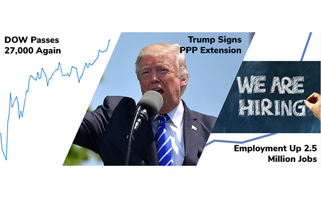 Major economic updates have come about this morning as new legislation was signed by the President. The Paycheck Protection Program Flexibility Act gives more room for small businesses to spend the money they receive from the program. Previously, companies were required to use at least 75% of the funds on payroll, but that number has changed to 60%. Furthermore, the timeframe for which funds need to be spent has been modified from eight weeks to 24 weeks. Additionally, the repayment period has also been extended from two years to five years. Along with the legislative news, unemployment has gone to 13.3%, a drop of 1.5% from April. This decrease was unexpected as CNBC reported that, "Economists surveyed by Dow Jones had been expecting payrolls to drop by 8.33 million and the unemployment rate to rise to 19.5% from April's 14.7%." The other big takeaway is the expected 8.33 million jobs lost when the actual result was an increase of 2.5 million jobs that were reported today by Yahoo Finance.