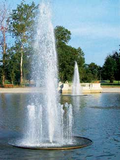 Other factors taken into consideration were the requirements for bringing the Grand Basin back to its original balanced, healthy state. ?EUR??,,????'??In addition to the eye-catching aesthetics of the spray patterns, the fountains also serve as a natural, environmentally safe and highly effective water-quality management tool,?EUR??,,????'?? says Mike Perkowski, fountain consultant, Hydro Dramatics. ?EUR??,,????'??At full thrust, the system conveys a turnover of approximately 6,400 gallons per minute. These oxygen-filled droplets return to the surface, releasing the oxygen and creating additional wave action. The added bonus is greatly improved health and clarity for this once tepid and stagnant lake.?EUR??,,????'??