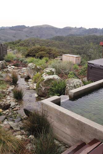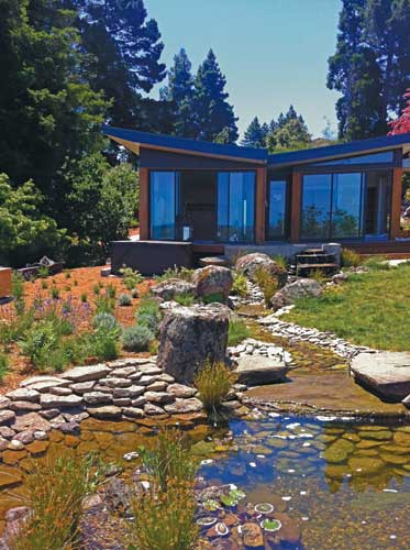 A project that started as an addition to a historic house in Berkeley?EUR??,,????'???s California Hills led to the completion of a vision conceived half a century earlier. Bay Area landscape architect Lawrence Halprin originally designed the garden, evidenced by design plans drawn up in the mid-1960s for a simple stream and concrete pond on the site. Large stones were placed around the yard, but it was clear the original vision had never been fully realized. Roth/LaMotte Landscape Architecture was brought in to integrate the new addition into the yard, and perhaps carry the original design forward, since designer Gary Roth worked for Halprin during the last years of his practice.
