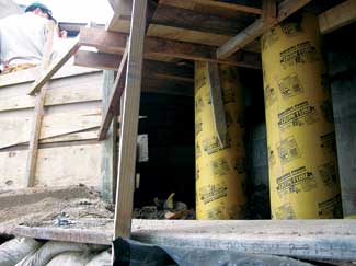 The retaining walls first had to be engineered and then approved by the city. They also poured the patios and the walkways, many of which had to be cantilevered. ?EUR??,,????'??When you do all your footings,?EUR??,,????'?? says Parker, ?EUR??,,????'??you need a series of inspections before you can put in the building blocks.?EUR??,,????'?? For the decks, the caissons were sunk down to wherever the soils engineer said they needed to go to meet bedrock. ?EUR??,,????'??For a project like this one, both soils and structural engineers are definitely required,?EUR??,,????'?? says Mike Parker.
