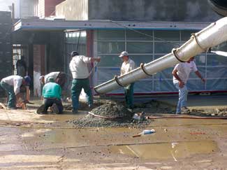 Mike Parker and his crew did new concrete walkways, steps, patios, and retaining walls. Generally there were a minimum of six men on the job, sometimes as many as twelve.