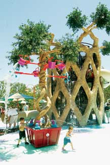 A new area has just opened with wonderful water features for small children. Bonfante?EUR??,,????'???s Splash Garden is an interactive water play area, with replicated circus trees, rides and water slides so kids can climb up to top and then slide down through a curving chute. As they play around the base, sprayed water makes them feel as if they?EUR??,,????'???re in a thunderstorm. There are five interactive play areas in Splash Garden, which just opened on the weekend of June 11, 2005 with water guns, splash fountains, sprinklers and water slides.