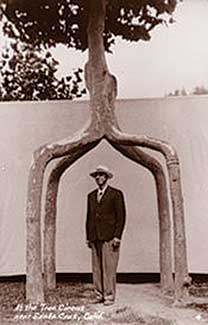 This botanical adventure began in Hilmar, California in the 1920?EUR??,,????'???s when Axel Erlandson (in photo above at left), a farmer by trade, observed the natural grafting of two sycamores. Using intricate grafting techniques, Erlandson wove his wonders with threads of living wood. Straight tree trunks became complex and compound designs in shapes like hearts, lightning bolts, basket weaves and rings.