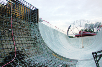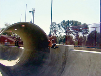 The pipe lies on a slight downgrade, making it extremely fast about halfway through the ride. Skaters can also attempt to skate up the side of the full pipe. This is known as the ?EUR??,,????'??oververt?EUR??,,????'?? section.