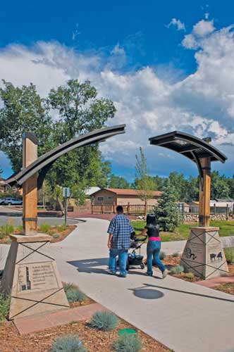 A Rifle, Colo. site once considered an overgrown flood plain has been transformed into the award-winning Centennial Park. It welcomes visitors from around the region and beyond with attractive public gathering spaces, recreation opportunities and a unique cultural-history trail that is a source of pride and identity for the community. The 14-acre linear park stretches for six blocks along Rifle Creek in the heart of the city, connecting the historic downtown on the south end to the county fairgrounds on the north end. Phase I of the park, which opened in September 2010, features a ?EUR??,,????'??walk through time?EUR??,,????'?? along the creek, with interpretive areas that highlight the city?EUR??,,????'???s rich ranching, farming and mining history, natural environment and cultural diversity.