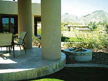 This landscape project focused on creating a natural garden effect through hardscaping. It brought forth the mountainous preserve onto the property through the details of old world rustic textures: natural slate, clay tile, granite, silica textured masonry walls, exposed and colored concrete. With this project located on the hillside of the Camelback Mountains in Paradise Valley, Arizona the finishing touches of the residence were just being completed, which meant all of the exterior areas surrounding the home were left as raw rocky terrain ready for a landscapers magic to be performed. First, machine and hand grading were needed to prep the site for the hardscaping phase. The project took approximately three weeks to complete. Our client had in place three specific features and locations for the pool, lawn area, and main entry water feature. They also desired a gentle hardscape. The rest was an open palate for my creativity: to control the hardscape so that it would not be overbearing, and to stay in tune with a true garden effect. Each landscapable area would have to be studied for weather exposure, flow of traffic, drainage, the type of hardscape material to be used; not only as a topping, but for a soft, rustic appearance for the home and garden architecture. It was important to determine the types and textures of plant species, what style or fashion of water feature, and where raised hardscape planters should be incorporated. The idea of where to locate the round shaped casual conversation patio came from studying the sun exposure from different times of the day. In addition, ease of access from the master bedroom, and salvaging the beautiful views of the city were taken into consideration. The ?EUR??,,????'??flow of traffic?EUR??,,????'?? concept was used to allow easy transition from one area to another. For example, the pool decking called for imported white tile throughout. Next to this tile, we juxtaposed lawn for the homeowners to step onto for easy transition and recreational purposes. Hardscape material choices were based on particular settings. For instance, on the elevated steps, we chose a nonslip rock that also gives appeal to the natural garden effect. Hardscape walls were needed to retain soil from one elevated area to the other. As a result, we took into consideration the type of finish texture and paint color to conform softly to the garden. Incorporating hardscape materials and their installation techniques on this particular project was critical. Not only did the various hardscape materials have to complement one another, but also the installation of each particular material was very time consuming. This was due to the intricate and extreme variables of curvature, circles, angles, elevated steps, grade changes and limited construction space. For example, the upper level patio areas where base concrete needed to be poured ?EUR??,,????'??+ and later slate tile would be installed ?EUR??,,????'??+ first had to be hand-graded to ensure correct water runoff due to the massive rocky soil. All wood and steel forms for concrete had to be double-stacked as well. Ten-foot wood ramps were built to enable our curbing machine to reach isolated areas that seemed impossible to access. The six-inch desert rose-colored concrete mow curb was implemented with an architectural flare to separate the lawn area from the permanent wall structures and eliminate water damage and shifting. On the second level area, where the swimming pool sits, the city required a pool wrought iron fence to be installed by code for safety purposes. This fencing completely encases the entire area, resulting in one way in and one way out. As a result, we decided to cut out sections of the existing fence, allowing access for a Bobcat to dig, drag grade, and move boulders. We also attached a steel chain to the front bucket of the Bobcat, helping us to raise our pallets of slate, sod and granite from approximately seven feet below. All of the work in this particular area had to be completed within one day for safety sake, as the section of pool fence had to be welded back together. Finishing the approach to the main entry called for the water feature to be a replica of the elevated steps entering the residence. Highlighted with the natural taj rose slate, it gives the cascading water a unique mirrored effect. The bubbling effect of the water had the same effect. Using raised hardscape planters really helped set off the areas where we needed to present not only elevation but also distinctive and noticeable planting gardens. These considerations in planning made implementing the hardscape more focused by truly creating a unique, natural garden. This project proved hardscaping could be beautiful in a natural environment. One absolute with hardscaping is the critical choices of plant material. Using different textured plant species, and placing them into the landscape for a staggered height effect and in a clustering fashion, created a natural garden and softened, expansive hardscape areas. Once again, utilizing hardscapes and its fine-tuned material definitely captured the beauty within a natural setting. Mitch Cluff is a landscape contractor and designer at Quinntana Associates in Mesa, Arizona