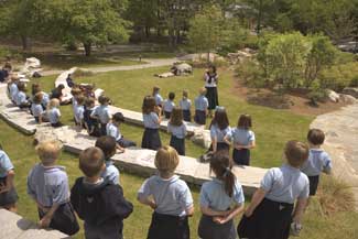 Along with the restoration of the stream was the reestablishment of a Memorial Garden displaced by the last two years of construction and establishing an adjacent garden in honor of a former headmaster and his wife. Located in front of the Lower School, the gardens are dedicated to the founder, Eva Edwards Lovett, and in grateful appreciation of the school?EUR??,,????'???s most recent former headmaster, Dr. Jim Hendrix.