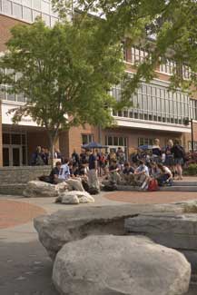 In addition, HGOR designed the new Post Plaza, which serves as an activity center and gathering area for the Upper and Middle Schools. Native southeastern boulders were hand selected by the landscape architect, then sited in the plaza to conform to the existing natural habitat on the campus.