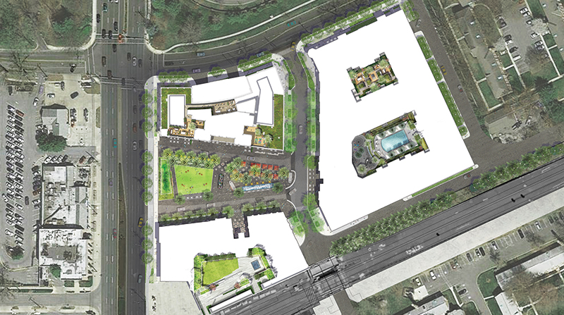 Located in Montgomery County, Maryland, Chevy Chase Lake Block B is a 9.5-acre, transit-oriented, mixed-use development adjacent to a future transit station. At the heart of this project lies a profound commitment to honoring the past while crafting a contemporary and vibrant community. From 1894 to 1937, the site hosted the Chevy Chase Lake Amusement Park - a popular recreational destination accessible by trolley for residents of Washington, D.C. The founders of Chevy Chase Lake envisioned it as "a tranquil yet convenient community away from the bustling city," a place where rolling land met wooded crests and impressive homes.Present-Day SettingChevy Chase Lake has matured into an established neighborhood known for its traditional architectural charm, pedestrian-friendly streets, and lush, natural surroundings. The current development builds on these foundations, threading together history, community, and ecology to create a renewed sense of place that seeks to preserve local character, enhance quality of life, improve connectivity, and introduce opportunities for public space, housing, and retail. The design philosophy revolves around key drivers - craftsmanship, flexibility, togetherness, sustainability, and multi-modal transit - that express themselves in the largest site gestures and the most refined details. The site comprises an array of outdoor environments, including a town square, a transit plaza, two amenity courtyards, three penthouse roof decks, and a pedestrian-oriented streetscape that seamlessly knits the site into the surrounding neighborhood.A Civic Heart Rooted in Heritage