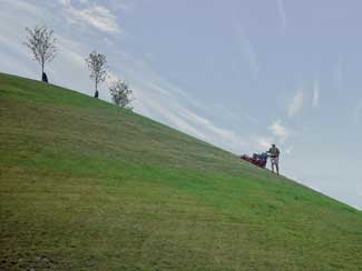 Slope Issue: The campus landscape is all hills, featuring many 25 and 30 degree grades. According to the superintendent, the topography generates the greatest horticultural challenge. A major difficulty is the wind experienced, which threatens plants with windburn, uprooting and crooked growth. Also, the elevated surface ensures that any mistakes are plainly visible from a distance. Finally, the slopes are a much greater energy drain for the crew than level ground.