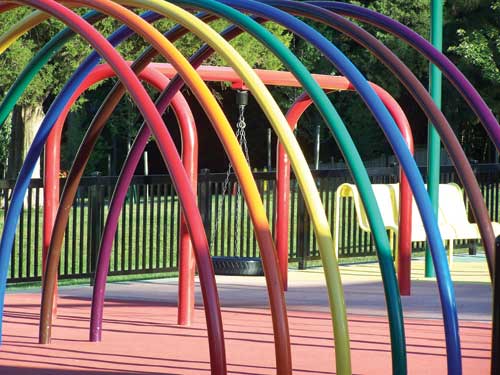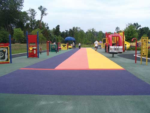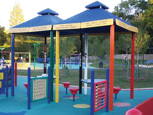 What’s that Name? The name of the playground, CLEMYJONTRI (Clem-mee-JOHN-tree), is an amalgam of the names of the Lebowitz children: Carolyn, Emily, John and Katrina. Mrs. Lebowitz stipulated the park incorporate a playground for disabled children, a picnic shelter and a carousel. The 18.5-acre park located 11.5 miles from D.C. in McLean, Va. includes a two-acre playground, a carousel, a picnic shelter and restrooms. Fairfax County Park Authority managed the design team and construction. It also manages the park and playground.