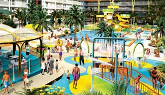 Forrec Ltd., a Toronto based design and planning firm, planned the renovations and co-branded an 800-room resort inn for this pilot venture between the Holiday Inn Suites Resort and Nickelodeon. The design goal was to expand the guest experience and increase occupancy by incorporating Nickelodeon TV characters into such attractions as dining, retailing, entertainment, and waterplay facilities.