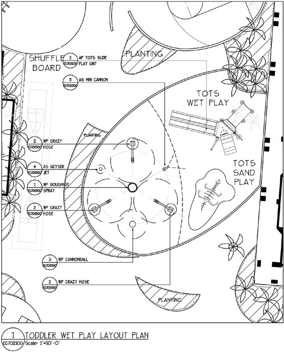 The pre-existing hotel offers one wing that caters to older kids and another that is tailored to younger children. The Lagoon and Oasis waterplay spaces are divided in a similar way. ?EUR??,,????'??When consulting with Nickelodeon and Holiday Inn, we discerned that age appropriate play spaces were integral to the overall design,?EUR??,,????'?? said Ingrid Vaivads, Forrec?EUR??,,????'???s primary Landscape Architect on the project. ?EUR??,,????'??Larger, above grade spray features were selected for the Lagoon where the older children play, while softer water effects and lower equipment were selected for the little ones in the Oasis.?EUR??,,????'??