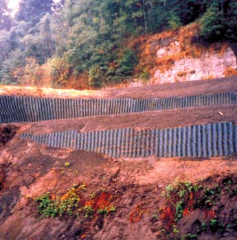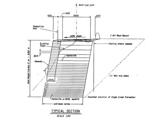 A geocell cellular confinement system with a vegetated fascia was selected. Final design was supplied by ODOT, and the geocell retaining walls were constructed as an FHWA Experimental Feature Project in recognition that this was the state's first experience with a geocomposite wall design of this nature.