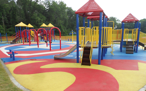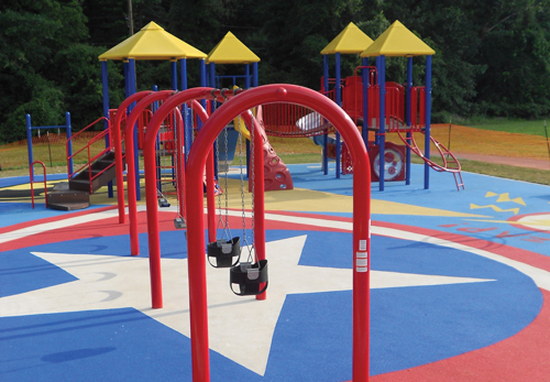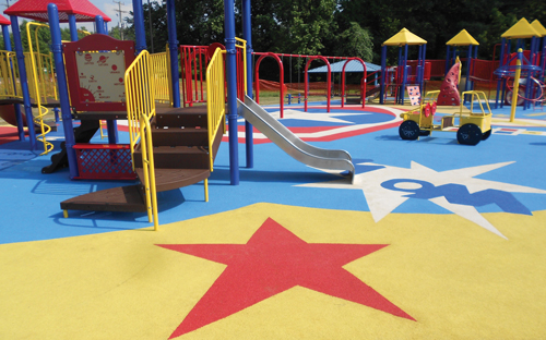 Designing can be fun and creative for a landscape architect. Within the past two years, the landscape architects at the Maryland-National Capital Park & Planning Commission in Prince George's County have been creating very unique playgrounds for kids to enjoy! Recently, I had an opportunity to work with my staff, Chris Colvin, to design several of these playgrounds. One day, a local Maryland sales representative with Commercial Recreation Products for Little Tikes/Play Power told me he had some play equipment that was for sale. He wanted me to know that the equipment "was already designed and had only colors of red, blue, and yellow"?(R)?and it was all STEEL equipment." I tried to think of what I could do to this basic steel equipment to make it more interesting. My thoughts drifted to the new comic hero summer movie that was coming out soon"?(R)? titled "Man of Steel." Wow! What a perfect idea"?(R)?I could turn this basic metal equipment into a superhero theme like the movie, "Man of Steel." After all, Superman and many other comic heroes used standard colors of red, blue, and yellow"?(R)?the exact colors of the playground equipment! With a few tweaks here and there the equipment was transformed into an action comic hero playground. The play value included comic hero faceplates for the steps, a Superman "planet system" panel, a Wonder Woman "fast silver slide," Batman climbing structures, rock wall, ring chin up bars, and a plastic curved hidden bat cave entry. In addition, for the Flash we provided an overhead fast gyro spinner with lightening bolts, and of course for Captain America we designed a large protective shield near the swing sets to allow kids to "fly" high while swinging over the American colors of red, white, and blue. Colorful additions were made by enhancing the rubber poured-in-place safety surfacing throughout the play area with bright comic graphic colors of red, yellow, blue, and white (and of course black for "Batman"). Chris Colvin helped draw and design collaboratively with me to create an action comic hero play surfacing. Some of the features of the play surfacing include, an entry hopscotch game with the words "COMICS" graphically added in place of the standard 1,2,3 numbering system. The comic hopscotch game serves as a large entry feature and a fun game to play for the kids. In addition, we added a lot of action hero words that were exciting to read, like SPLAT! PLOP! WOW! ZAP! AND ZOOM! Standard age play signage can also be graphically enhanced, with the new digital image capabilities. So, I decided to use Comic Hero action wording on the standard age appropriate play rule signage too"?(R)?we added the words seen in the playground surfacing to the signs (SPLAT, WOW, ZAP, etc.) and provided a comic action background of lightening bolts for the Flash, a water mark for the SPLAT word, a large star for the WOW of Wonder Woman near the 2-5 play structure, a long pale yellow direction funnel pointing toward the "Batman" sign ,which is visible once you climb high up on the top deck of the 5-12 play structure. If you get a chance to visit Prince George's County, Maryland please come visit the Comic Heroes playground located a Heurich Park"?(R)?we would love to share our park with you! Bring your kids and dress them as their favorite action comic hero"?(R)?and have fun playing outdoors!