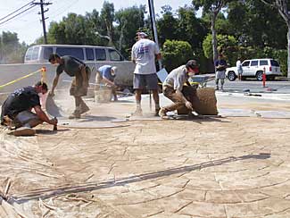Morgan says virtues of concrete texturing are many. The variety of colors and textures are virtually unlimited and concrete is just as durable as paving stones or asphalt. It holds up under the weight of vehicular traffic, can be used as a skateboard deterrent, and looks as good, if not better, than similar applications. In fact, the only time Morgan says he wouldn?EUR??,,????'???t recommend using textured concrete is if the client is really insistent about it resembling another surface.