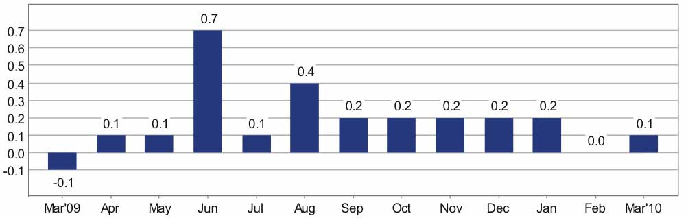 On a seasonally adjusted basis, the Consumer Price Index for All Urban Consumers (CPI-U) increased 0.1 percent in March. Over the last 12 months, the index increased 2.3 percent before seasonal adjustment.