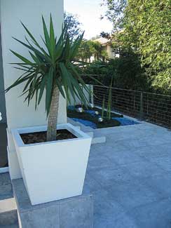 These selections offer the privacy the homeowners wanted without taking away the clean, contemporary lines that they desired. The plant palette also satisfies their wish for a site that has a tropical feel.