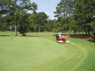 The greens are cut everyday to a height of .14 inches, the fairways are mowed at half an inch (3/8 of an inch for tournaments), and the roughs are kept at 2.5 inches. The Stonemont course is tended to Monday/ Wednesday/Friday, while the Lakemont course is mowed on Tuesday/ Thursday/ Saturday. ?EUR??,,????'??Though, all the best laid plans of mice and men have to be adjusted sometimes,?EUR??,,????'?? said Williams. ?EUR??,,????'??We often have to stay late to catch up.?EUR??,,????'??