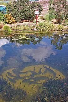 Whenever you first add (or replace large quantities of) the water, be sure and use a de-chlorinating chemical to remove chloramines from municipal water, or it will be hard on your underwater plants, and can kill fish within minutes. We selected many varieties of sub-tropical, and very colorful, fish as the final touch and the living voucher that our water quality is excellent, and clear enough to view the fish from above as if they were in an aquarium. We have tested and selected about 25 varieties of sub-tropical fish that are winter hardy on the Southern California coastal plain, and in fact, we have a greenhouse with spawning and raising pools where we grow our own fish. Soon after we added about 60 fish, they started reproducing wildly, and the numbers went to hundreds by the end of the summer! Our fish weren?EUR??,,????'???t content to stay in the bottom two pools. We found them at all ends of the stream, having overcome even two of our tallest waterfalls that crossed an air-gap of over 12 inches! We?EUR??,,????'???re talking leaping ?EUR??,,????'??salmon?EUR??,,????'?? here!