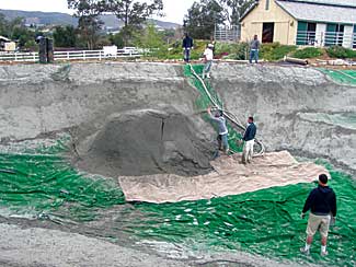 First we shape the land. The error that many water feature companies make is the failure to understand water and how it erodes- shaping valleys, canyons, meanders, cuts, deltas, and occupying low spaces. We are careful not to create a ?EUR??,,????'??molehill?EUR??,,????'?? for our waterfalls to cascade off of. Instead, our waterfalls appear as if they have eroded down in their own canyon to hard layers of bedrock, and when they can cut against it no more.