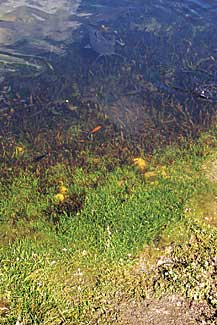We watch the glint and flash of the brightly-colored fish as they dash from their schools to the surface and away again, with a quick morsel of food, while our dog laps away at the cool, refreshing water and we watch the darting dragonflies. And all the while birds splash, and flutter, bathing at the water?EUR??,,????'???s edge!