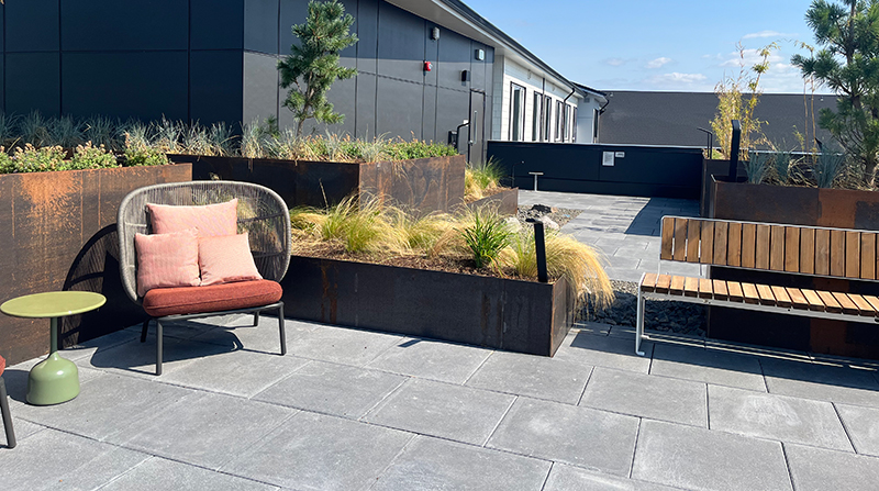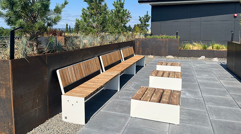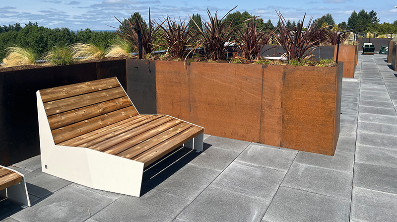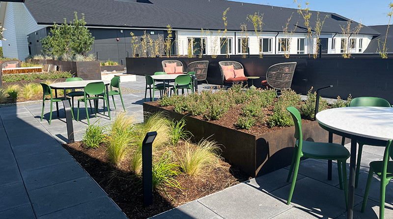 Border Concepts custom BORCON steel planters were designed to define space and add modern elegance to this Redmond, Oregon, apartment rooftop. The result? A functional amenity elevated into a true design feature.The ProblemThis apartment rooftop was truly a wide-open blank canvas that needed defined gathering spaces.