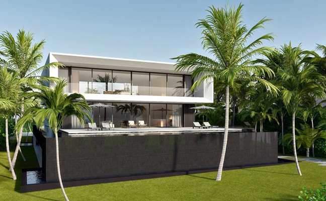 Insite Studio provided the landscape architecture services for this new contemporary ocean front home on Jupiter Island. We collaborated with HUUM Architects on the extensive water features and infinity pool cascading from the second level to the terrace below. In addition to the hardscape design, Insite Studio focused on the ground-level landscape design, relocating, and preserving numerous coconut palms from the property to further compliment the architecture and complete the garden spaces.
