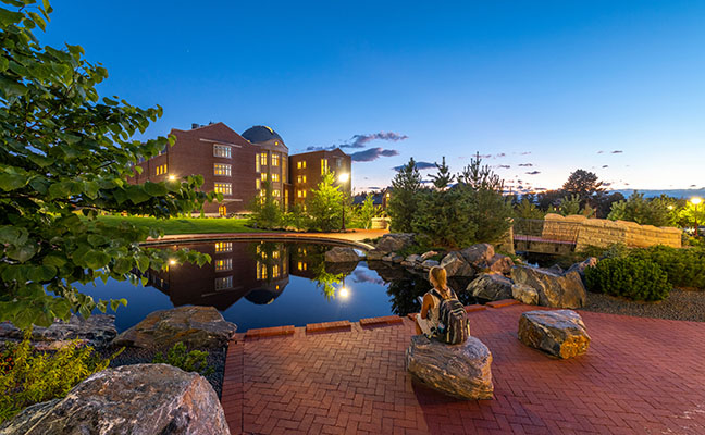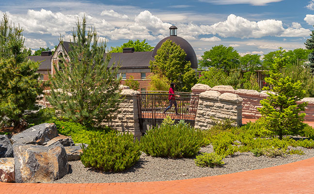 The upcoming School and Campus Design Issue of Landscape Architect and Specifier News saw many firms submit their projects for feature consideration. This project was not chosen for a Feature in the issue, but we at LandscapeArchitect.com thought the project deserved to be showcased online . . . Dan's Garden is a pinetum that instills health for students, faculty, and staff at the University of Denver by providing a place for reflection and contemplation to support the rigors of academic life. Showcasing native, rare, and noteworthy plant species, the garden expands the greater campus arboretum by providing a space specifically devoted to pines, firs, and spruces. From tall evergreens to dense shrubs and soft groundcover, the selection of plants composes a layered landscape offering varying levels of enclosure and seasonal change. A reflective pond accentuates the beautiful plants and local stone to create a quiet, contemplative feel. Designed to be active year-round, the pond provides habitat for aquatic and avian life and acts as a cooling pocket within the city. Extending beyond the garden scale, the project takes advantage of opportunities to increase urban biomass, support biodiversity, mitigate heat island effects, improve air and water quality, and provide habitat for key plant and animal species.