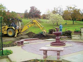 Also, in 2003 we began construction of footers and patios for the installation of four new columbarium towers. (A columbarium is a mausoleum that holds the remains of cremation.) Our staff excavated the areas on either side of an existing ?EUR??,,????'??fountain patio?EUR??,,????'?? and laid the concrete block footers for the granite towers. A contractor completed the patio areas with colored, stamped concrete. The first tower was delivered in August 2003. The second tower is expected in May 2005. Each one is over seven feet tall, and weighs over 4,000 pounds. Our legacy columbarium towers provide our families with premium inurnment for those who prefer cremation.