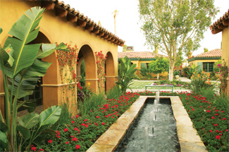 The landscape palette for the Hideaway was chosen to highlight the hidden oasis nature of the community with a colorful mixture of native wildflowers and grasses, shaded groves of palms and citrus trees, and tropical accents. Although not quite as water conservation-minded as Scottsdale, city leaders in La Quinta and the Coachella Valley are beginning to take a more active role in conservation.