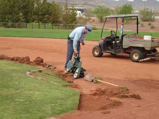 With large opens spaces of turf as well as two youth baseball fields comprised mostly of tall fescue, Mission Hills has 13 acres of turfgrass. The infields, however are made up of hybrid Bermuda. Temperatures range as low as the teens in winter and as high as 120s in the summer. “It’s extremely harsh for both plant material and people,” said Phelps. “In the winter, turf is a low priority. It pretty much goes to sleep and allows us to focus on other things.”