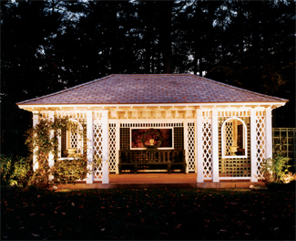 After deciding on the size and placement of lighting fixtures, the electrical system is designed. The heart of the system is the transformer, which converts the household 120 volts into safe, efficient 12 volts, and delivers this voltage to several circuits. Using appropriately sized cables and approved connectors, fixtures are connected to the transformer.