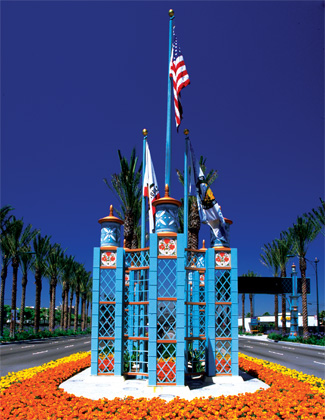 There was a unique public/private partnership between Anaheim and Disney, there were several hundred landowners to consider, and just how could landscape become the dominant visual element along two very busy streets that serve the estimated 20 million annual visitors to the park?