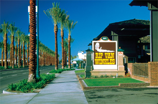 The simplicity of the overall landscape design is reflected in the basic concepts, which emphasize the use of geometry to create unity and scale as well as diversity in plant material to create an exotic, subtropical resort environment. The predominance of drought tolerant, low maintenance plants for economy and responsible resource management. The character of the landscape on Katella relies primarily on narrow strips of land in the parkways and medians. The great variety of architectural styles and building masses suggested that dense plantings would be the most effective unifying element.