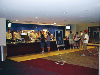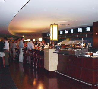 ?EUR??,,????'??We choose to highlight the back areas of the food services, which made the patrons area appear dimmer and more intimate,?EUR??,,????'?? Whitehouse said. ?EUR??,,????'??Compact fluorescent downlights were utilized. Custom table labels of brushed aluminum bases with layers of acrylic sandwiching amber toned papers where lighted with linear fluorescent to provide a warm feel to the counters and at the same time maintaining and energy efficient lighting approach.?EUR??,,????'??