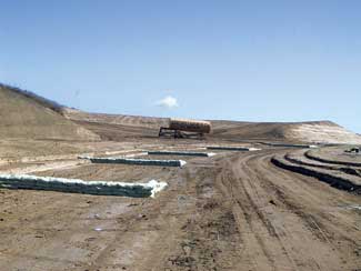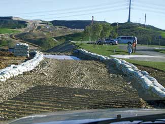 Our initial involvement was during seismic exploratory work. There were excavations and trenches hundreds of feet wide and deep and thousands of feet long. We began with perimeter controls and run-off diversion and retention with some stabilization prior to mass grading operations. We employed sandbag check structures, earthen berms and poly-sheet lined run-off channels. Silt fences, sandbag retention rows and stabilized rock entries were place on the perimeters.