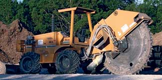 A rockwheel, on the other hand, is a toothed metal wheel?EUR??,,????'??+effectively a giant circular saw. Rockwheels are generally heavier and more powerful than landscapers will ever need for irrigation of lighting lines. They can cut harder ground than a chain trencher, including cutting through solid stone. They are also used to cut pavement for road maintenance and to gain access to utilities under streets and roads.