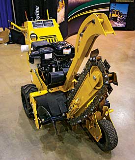 A chain trencher cuts with a digging chain that is driven around a rounded metal frame, or boom. The layout resembles a giant chainsaw. This type of trencher can cut ground that is too hard to cut with a bucket-type excavator.