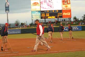Hammons Field in Springfield, Mo., is home to the Cardinals, Double-A affiliate of the St. Louis Cardinals. The facilities annual attendance is 461,000, third in the league, and the Missouri State Bears also practice and play on the site. Meeting the doubleheader challenge is a major league groundskeeping crew.