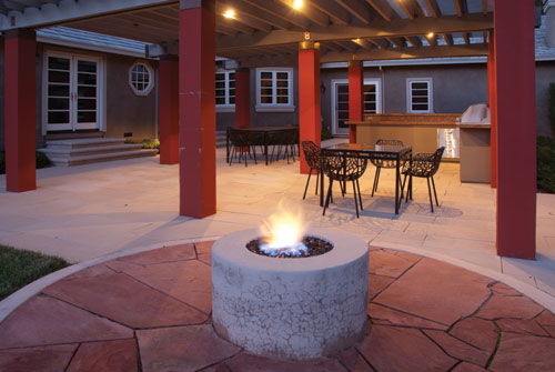 Vendors Cast Concrete Countertop: Mark Concrete Path Lighting: Kichler Lighting Fountain Lights: Focus Lighting Arbor Lights: BK Lighting Furniture: Janus et Cie Driveway Pavers: Belgard Precast Concrete Patio Pavers: Stepstone Firepit Bowl: Quickcrete Planter Pots: Garden Art Copper Urns: Smith Hawkens