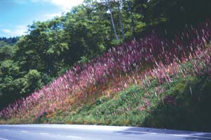 Vegetation should be selected for desired stabilization objectives and be compatible with soil and site conditions. The latter includes consideration of soil type, water availability, nutrient status, and soil pH, climate, possible browsing pressure, regulations governing the use of exotic or non-native species, etc. Certain types of plants are intrinsically better suited than others for specific stabilization objectives. Woody vegetation is stronger and deeper rooted than herbaceous plants and grasses and provides greater mechanical reinforcement and buttressing action at depth. Accordingly, woody plants are superior for mass stability. Grasses and herbaceous vegetation, on the other hand, grow close to the surface and provide a tight, dense ground cover (see Figure 4). They tend to be superior, therefore, in intercepting rainfall and preventing surficial erosion. Shrubs are not as deep rooted as trees nor can they be expected to provide as much buttressing restraint as trees. On the other hand, shrubs are more flexible, have less above ground biomass, and exert less surcharge on a slope (see Figure 5). They may preferable, accordingly in riverbank and levee stabilization where these attributes are advantageous. The characteristics and relative advantages/ disadvantages of different plant types for various applications are summarized in Table 3.