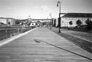 Prefabricating panels and shipping them to the site is another answer and this was done for a boardwalk at Charleston Navy Yard near Boston, and another in Erie, Pennsylvania. The company also furnished panels for an outdoor performing arts stage in Little Rock, Arkansas.