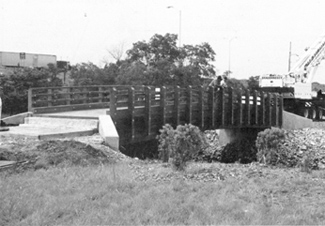One example which Harkens cited was a 14' x 62' bridge in Dorchester, Massachusetts where the entire bridge was shipped to the site on a truck, removed from the truck by two 30 ton cranes and put into place. This bridge now stands on the roadway entrance to Victory Road Park in Dorchester.