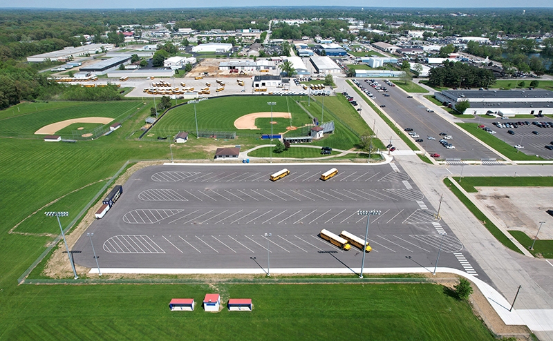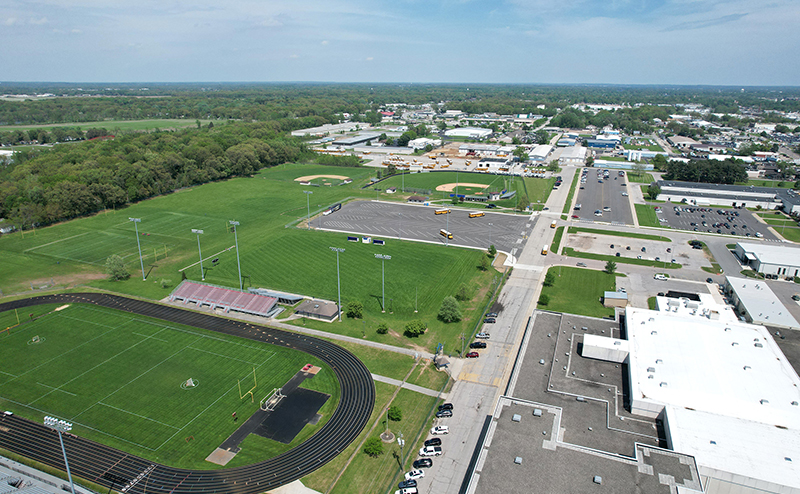 The School and Campus Issue of Landscape Architect and Specifier News saw many firms submit their projects for feature consideration. This project was not chosen for a Feature in the issue, but we at LandscapeArchitect.com thought the project deserved to be showcased online . . . In 2020, a transformative event took place in Elkhart, Indiana when Memorial and Central High Schools merged to form the new Elkhart High School - a singular school serving grades 10 through 12. This merger brought about exciting opportunities but also posed a unique challenge - twice as many students meant twice as much vehicular traffic. In response to this, the Elkhart Community School Corporation (ECSC) enlisted the expertise of Jones Petrie Rafinski (JPR) to reimagine the traffic flow on the new campus.