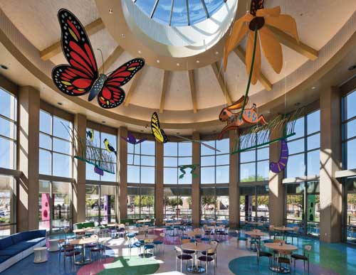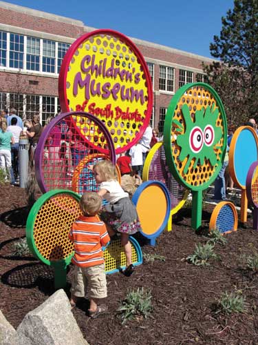 LEED Designation Planned with sustainability in mind, the project incorporated large areas of native plants, such as Moonshine Yarrow, Black Eyed Susan, and Spiked Gayfeather, which have a low dependence on supplemental water. Other important qualifying LEED features include pervious aggregate pathways, as well as streetscape and parking improvements that have increased efficiency of traffic patterns, and have created a civic campus feel among the museum and the adjacent Senior Center, Community Cultural Center, and Public Library. The perimeter of the Children's Museum of South Dakota property was developed to work in conjunction with the redeveloped streetscape and to respect the historic character of the downtown. Among the sustainable design decisions on the building's interior were the use of recycled materials, the restoration of all existing windows to open the building back up to natural light, and the repurposing of existing gym bleachers as balcony railings, new seating, and exhibit components. The building renovation and site improvements achieved a LEED Silver certification. To learn more about the Children's Museum of South Dakota, please visit prairieplay.org.