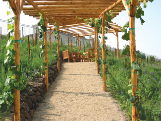 In constructing this garden, we chose solutions employing sustainable techniques and technologies. In many instances, these technologies are low-tech not high-tech. With each project we seek to understand and replicate the natural systems that are presently, or were, inherent at the site before development. Impervious surface areas can alter the water cycle and destroy the aquatic eco-systems. They also change the shape of stream channels, raising water temperatures and washing pollutants into aquatic environments. It’s important to recognize this and reduce or eliminate the use of impervious hardscapes. Use of pervious hardscaping allows rainfall to percolate directly into site soils, producing healthy, vigorous and abundant life while creating naturally beautiful gardens that mimic the exquisite natural landscapes of our planet.