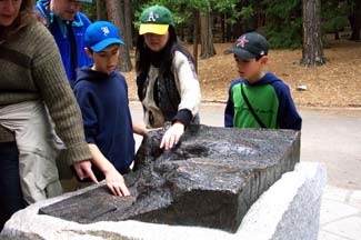 Created by a team led by Lawrence Halprin, the new design has erased the parking lot and added close to a mile of pathways that let visitors explore natural, cultural and historic details that went unnoticed before. Among those details are a marker for Yosemite pioneer James Hutchings' hotel and sawmill (where conservation icon John Muir lived and worked) and the site of one of Yosemite's largest Native American villages.