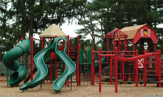 That?EUR??,,????'???s what Al Daniels was thinking when he chose O?EUR??,,????'???Brien and Sons to build his showcase playground at Normandy Farms Resort in the town of Foxboro, MA. The Daniels family began farming this land more than 200 years ago, but in 1972 they decided to create a campground on the site to bring in extra income. Today, Normandy Farms is one of the largest and most successful family camping resorts in North America. Amenities abound, including a golf course, recreation center, swimming pools, fishing and on site craft classes. To reinforce the heritage of the 100-acre site, Al and Doris Daniels chose to build their new playground with a farm theme.